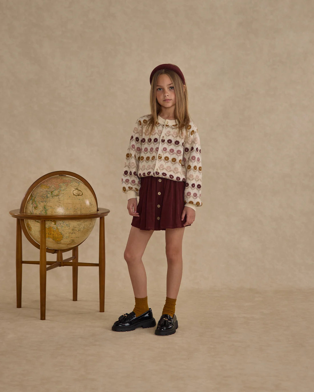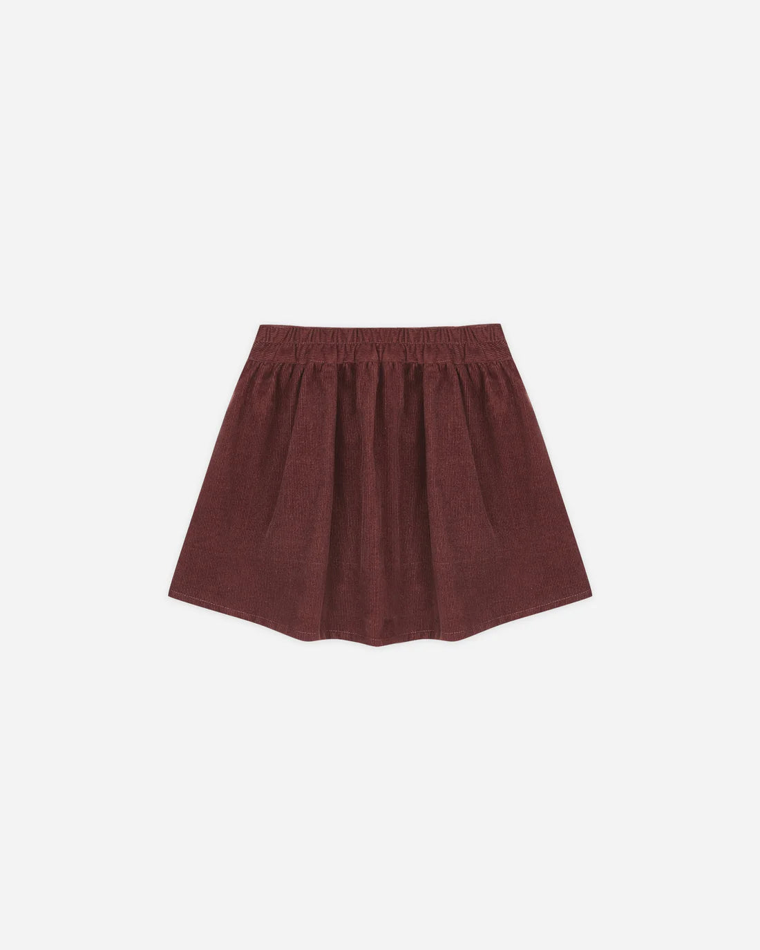 This charming corduroy mini skirt features an elastic back waistband and coconut buttons for a perfectly stylish fit. Featuring our 'burgundy' hue. Care: Machine wash cold. Lay flat to dry....