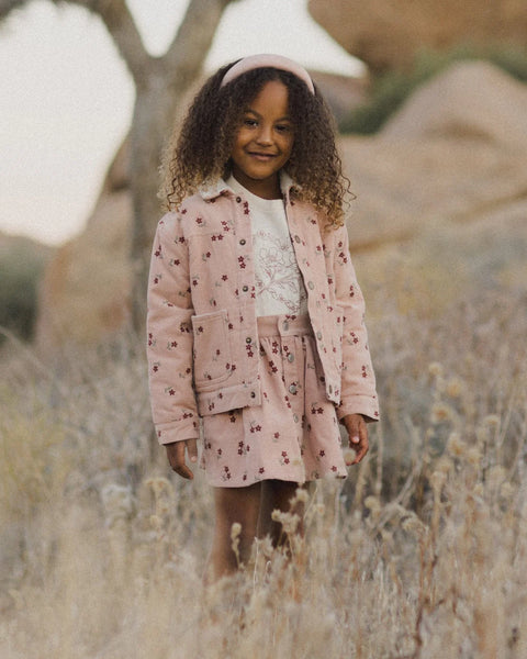 This adorable corduroy mini skirt offers for a stylish look, accented with antique brass buttons.