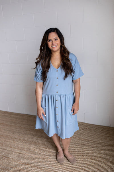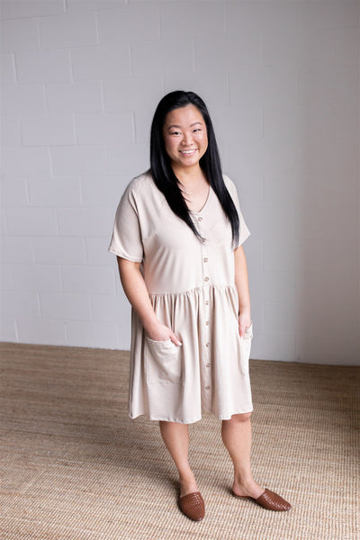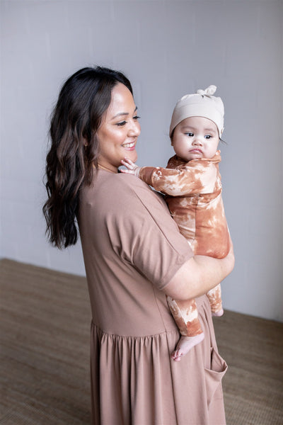 The Ladies Pocket Dress is back again in new colours and prints for spring! our soft and airy bamboo blend with a cardigan on top will keep you warm and cozy during those chillier days!