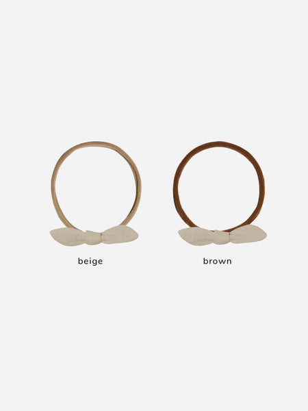 Little knot bow on a thin headband in 'oat'