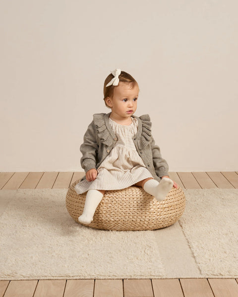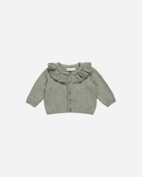 This classic ruffle collar cardigan with light coconut buttons will have your little one warm and stylish.