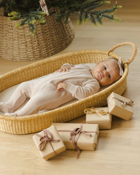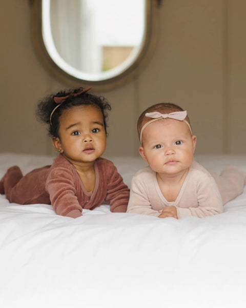 Long sleeve snap footie with hidden snap front placket in our velour fabric.