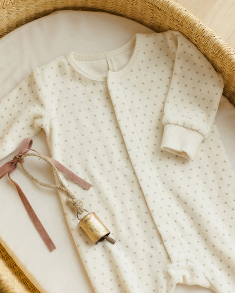 Long sleeve snap footie with hidden snap front placket in our velour fabric.